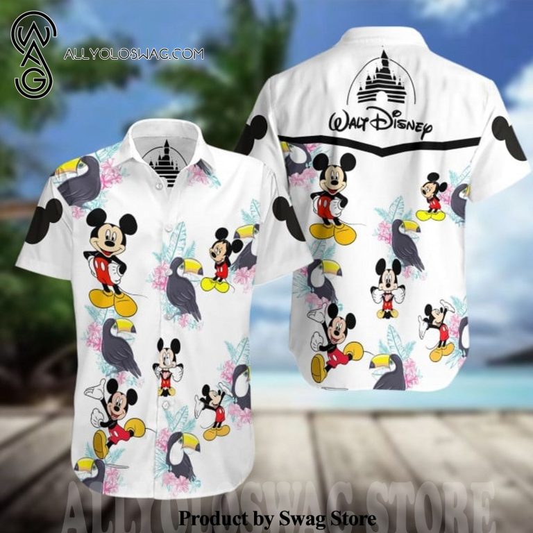 Hawaiian Shirt [Top-selling] Mickey Mouse Walt Disney All Over Print Summer Short Sleeve Hawaiian Beach Shirt – White