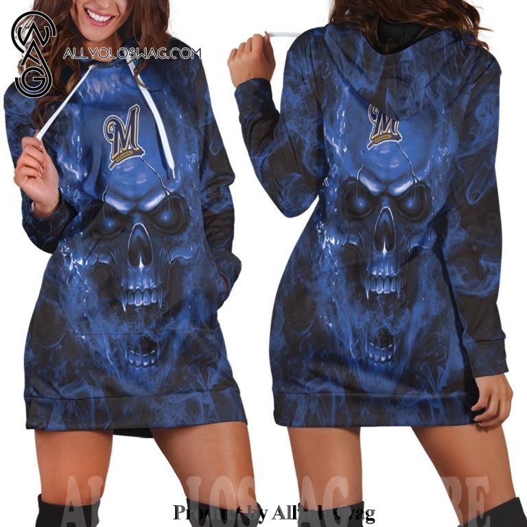 Three Outfit Ideas For A Hoodie Dress [Top-selling] Milwaukee Brewers Mlb Fans Skull Hot Version All Over Printed Hoodie Dress