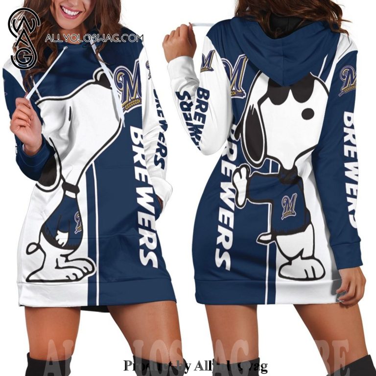 Three Outfit Ideas For A Hoodie Dress [Top-selling] Milwaukee Brewers Snoopy Lover Cool Version Full Print Hoodie Dress