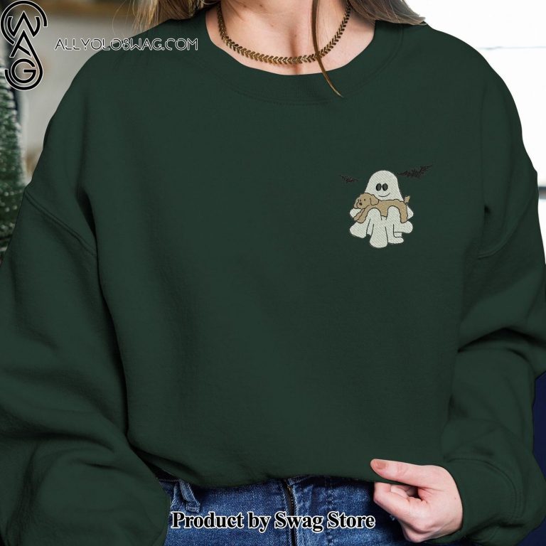 NOTE: [Top-selling] Mini Ghost with Dog Embroidery Sweatshirt