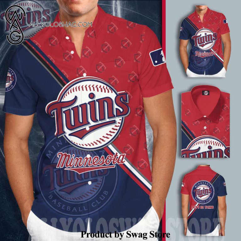 Some details about our product [Top-selling] Minnesota Twins All Over Print Short Sleeve Dress Shirt Hawaiian Summer Aloha Beach Shirt – Blue Red