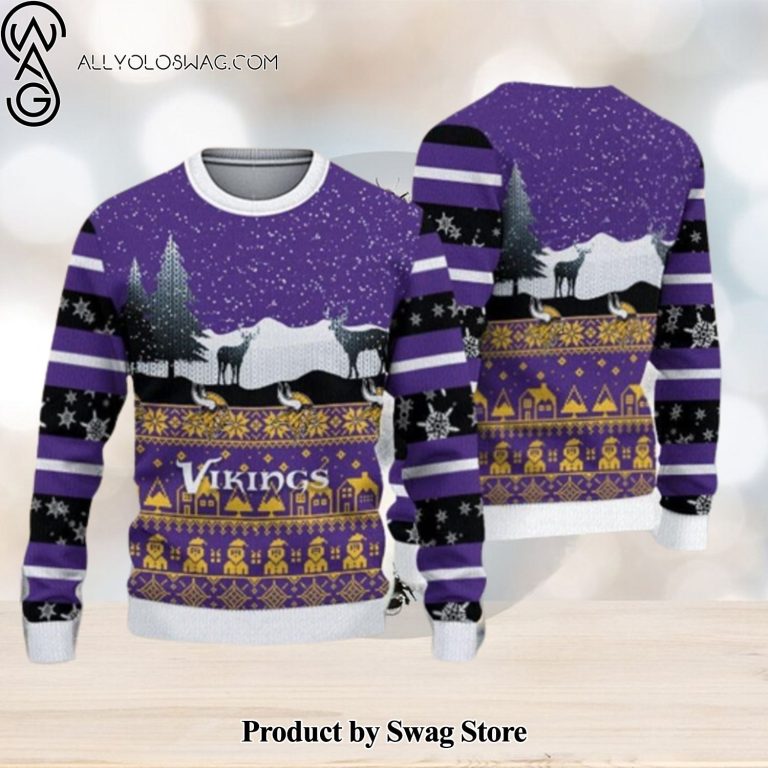NOTE: [Top-selling] Minnesota Vikings Christmas Reindeers Pattern Knitted Ugly Christmas Sweater AOP Gift For Men And Women