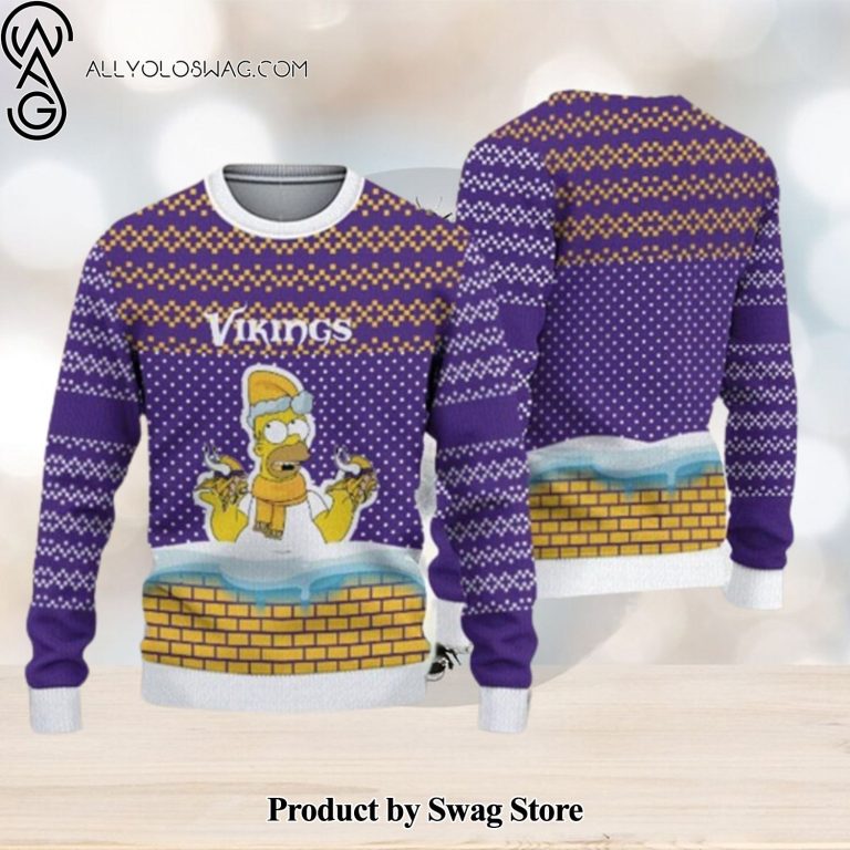 NOTE: [Top-selling] Minnesota Vikings Christmas Simpson Knitted Ugly Christmas Sweater AOP Gift For Men And Women