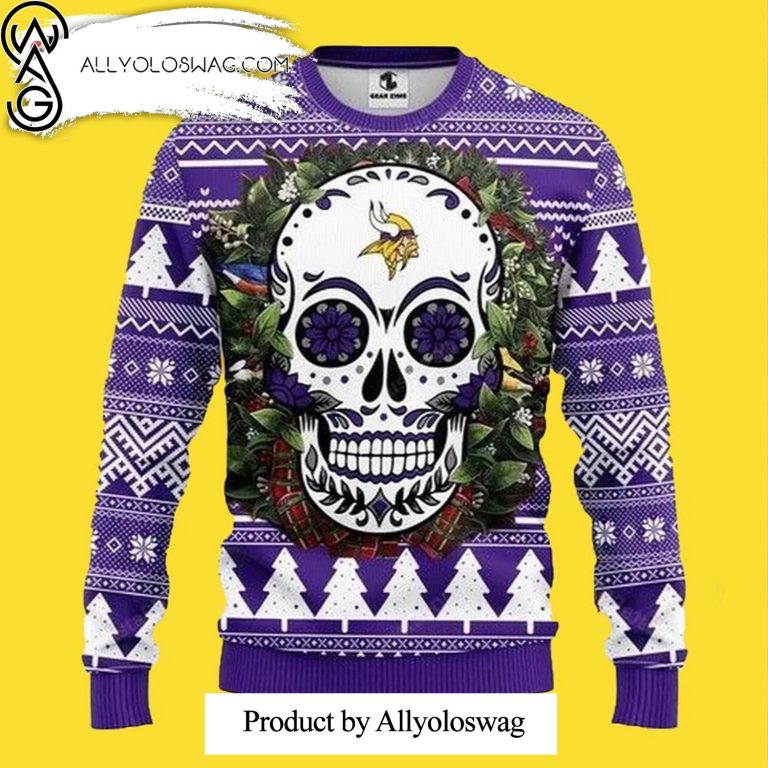 NOTE: [Top-selling] Minnesota Vikings Customs Skull Flower Wool Holiday Sweater