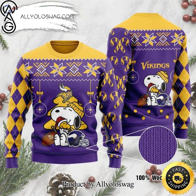 Some details about our [Top-selling] Minnesota Vikings Funny Charlie Brown Peanuts Snoopy Ugly Christmas Wool Knitted Sweater