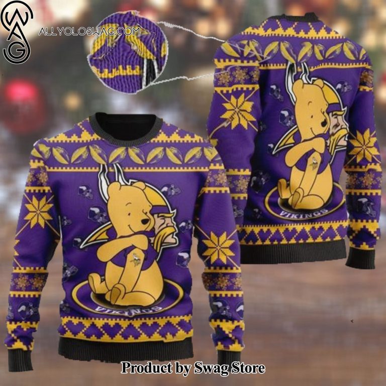 Some details about our [Top-selling] Minnesota Vikings NFL American Football Team Logo Cute Winnie The Pooh Bear 3D Ugly Christmas Sweater Shirt For Men And Women On Xmas