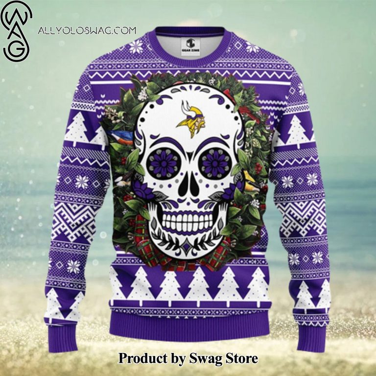 Some details about our [Top-selling] Minnesota Vikings Skull Flower Ugly Christmas Ugly Sweater