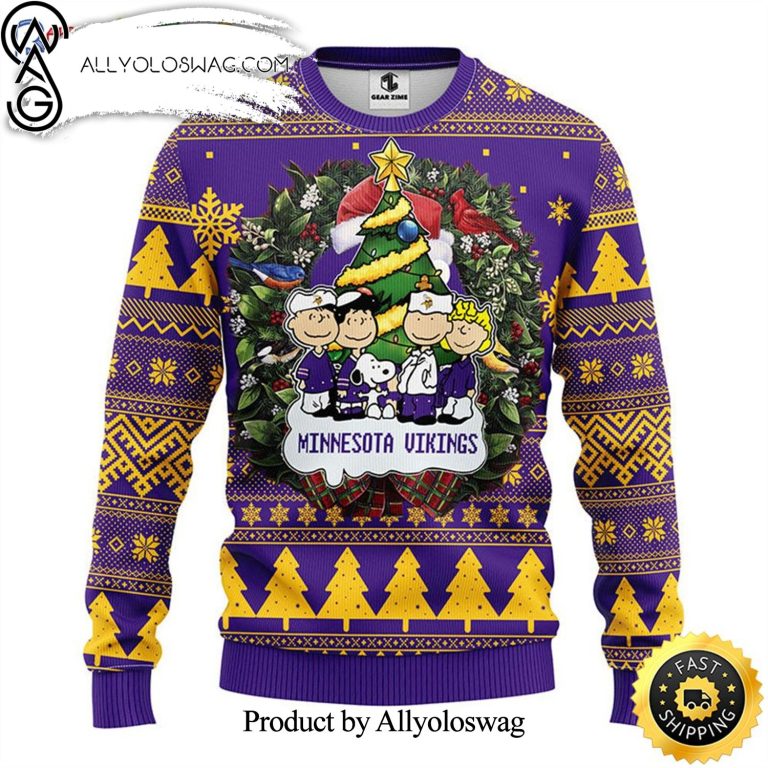 Some details about our [Top-selling] Minnesota Vikings Snoopy Dog 3D Ugly Xmas Wool Knitted Sweater