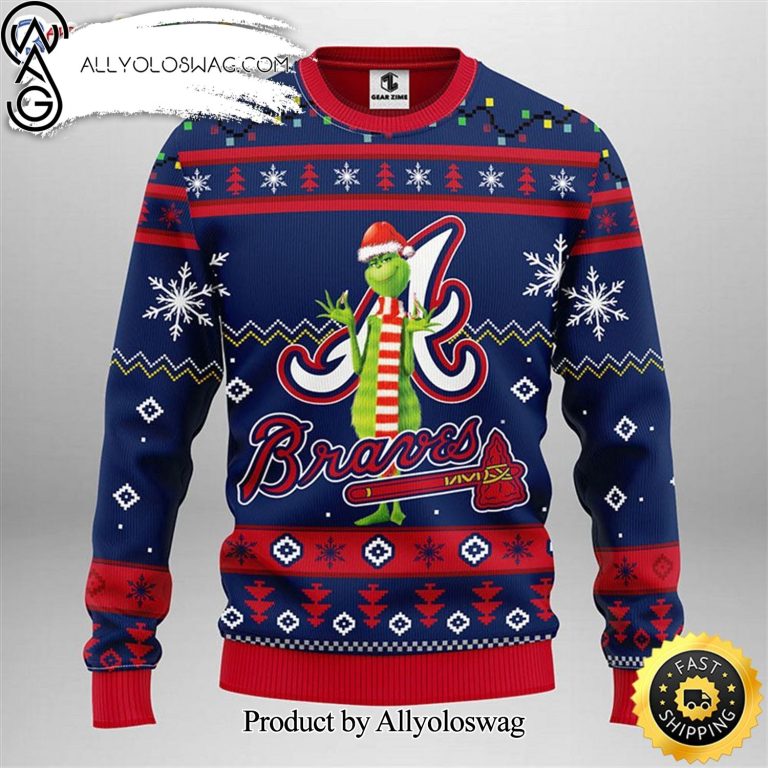 Some details about our [Top-selling] MLB Atlanta Braves Grinch Gift For Baseball Fans Knitting Pattern 3D Print Ugly Sweater