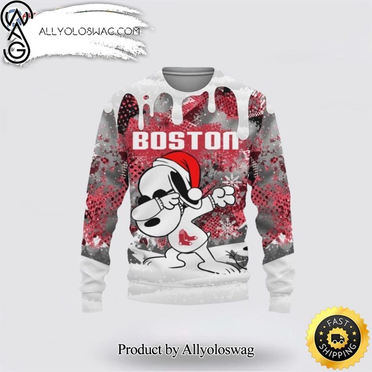 NOTE: [Top-selling] MLB Boston Red Sox Snoopy Dabbing The Peanuts Knitting Pattern Ugly Christmas Sweater