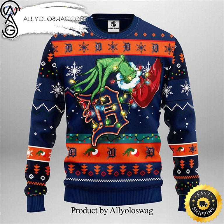NOTE: [Top-selling] MLB Detroit Tigers Grinch Gift For Baseball Fans Ugly Christmas Wool Knitted Sweater