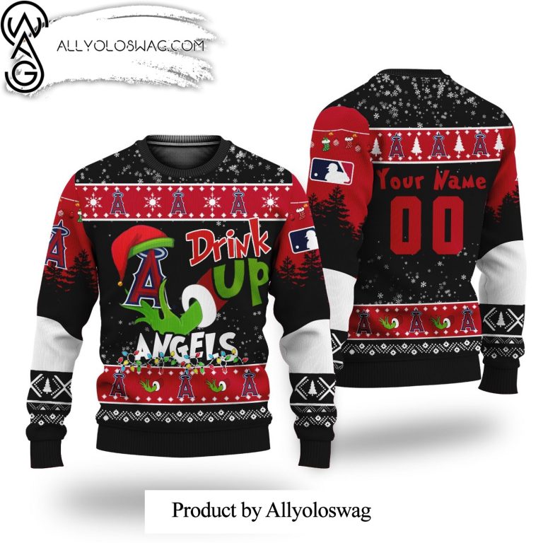 NOTE: [Top-selling] MLB Grinch Drink Up Los Angeles Angels Customs Wool Holiday Sweater