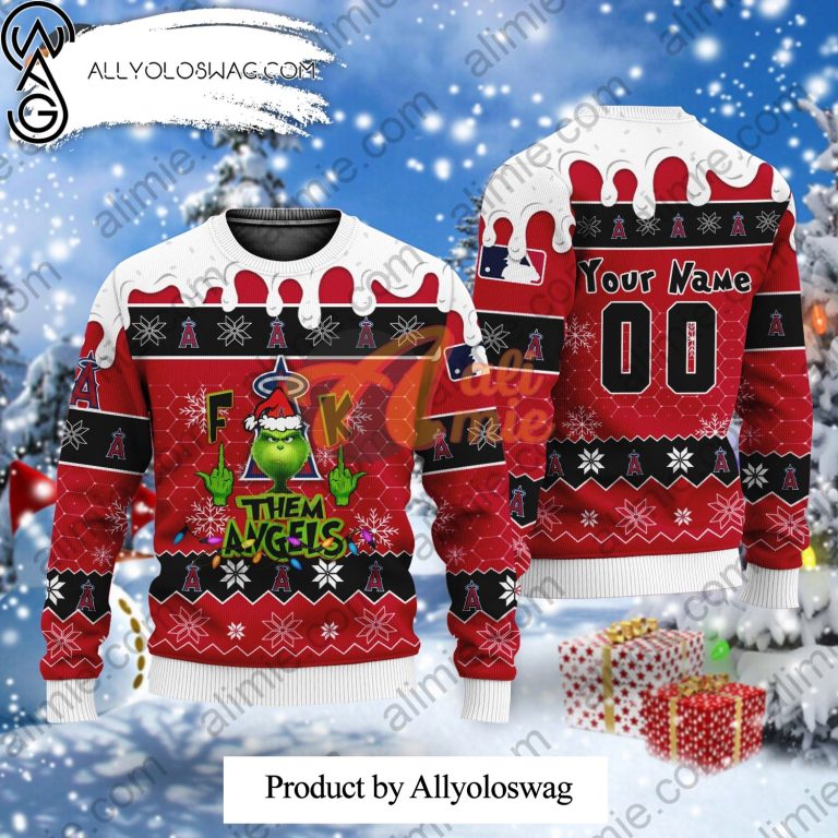 NOTE: [Top-selling] MLB Grinch Fuck Them Los Angeles Angels Custom Knitting Pattern Ugly Christmas Sweater
