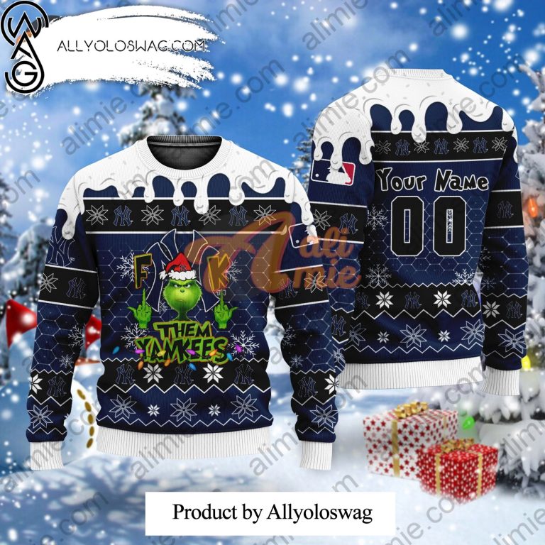 NOTE: [Top-selling] MLB Grinch Fuck Them New York Yankees Custom Knitting Pattern 3D Print Ugly Sweater