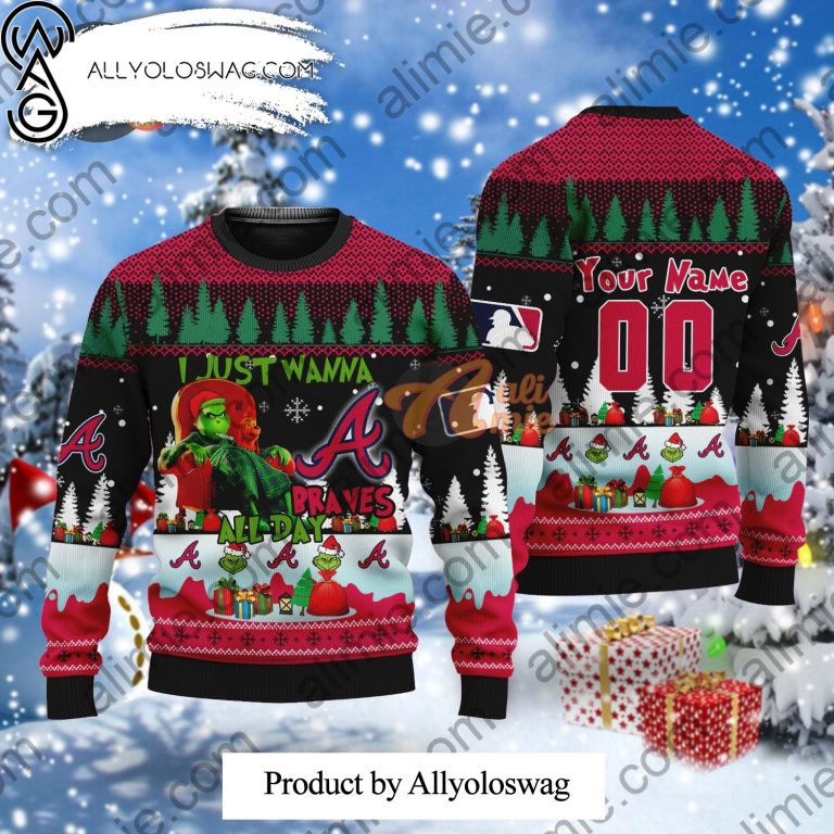 NOTE: [Top-selling] MLB I Just Wanna Atlanta Braves All Day Grinch Woolen Christmas Ugly Sweater