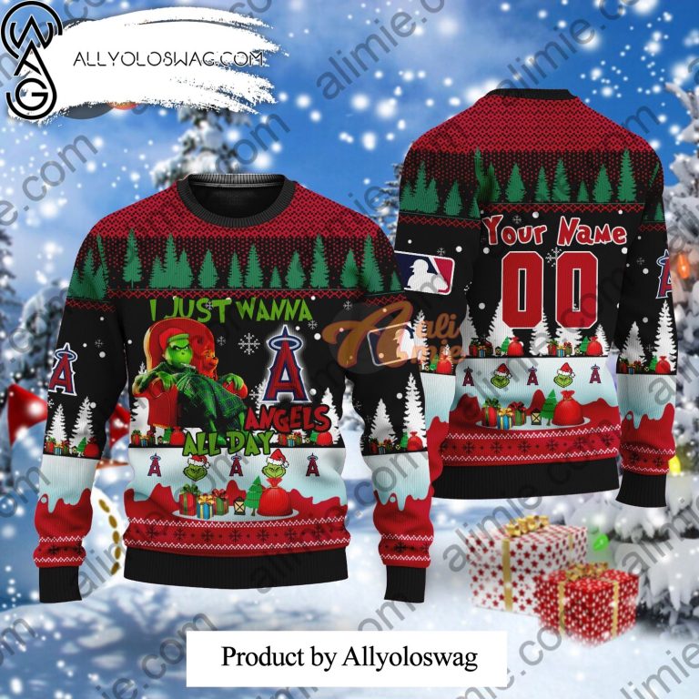 Some details about our [Top-selling] MLB I Just Wanna Los Angeles Angels All Day Grinch Ugly Christmas Holiday Sweater