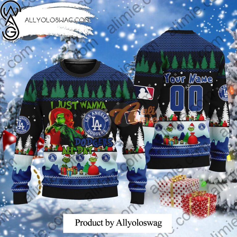 Some details about our [Top-selling] MLB I Just Wanna Los Angeles Dodgers All Day Grinch Sweater