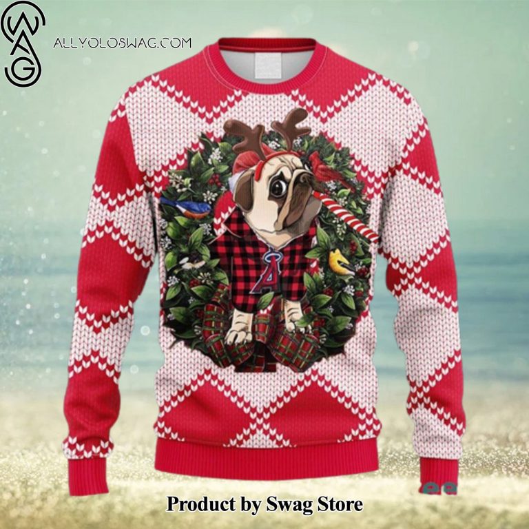 Some details about our [Top-selling] MLB Los Angeles Angels Pub Dog Christmas Ugly 3D Sweater For Men And Women Gift Ugly Christmas