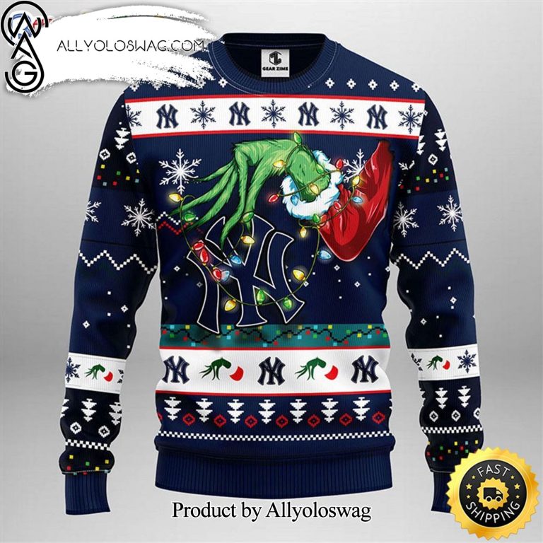 NOTE: [Top-selling] MLB New York Yankees Grinch Gift For Baseball Fans Ugly Christmas Wool Knitted Sweater