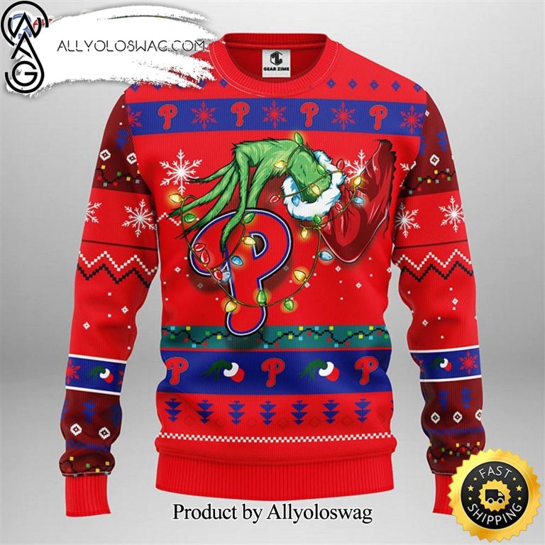 NOTE: [Top-selling] MLB Philadelphia Phillies Grinch Gift For Baseball Fans Knitting Pattern Ugly Christmas Holiday Sweater