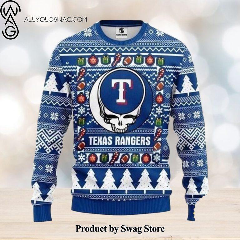 NOTE: [Top-selling] MLB Texas Rangers Ugly Christmas Sweater The Intelligence Of The Skull Unisex Sweater