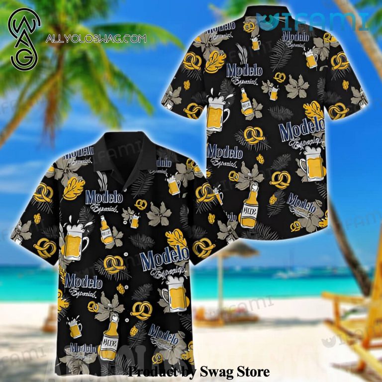 [Top-selling] Modelo Tropical Leaves Glass Gift For Beer Lovers Hawaiian Shirt was hand-tailored in the early days of fashion. This might happen in the comfort of one’s own home or at a custom tailor’s business. These stores immediately sprang up all across the islands, especially in plantation towns and Honolulu. Newly accessible fabrics from throughout the world were sold at dry goods stores, including printed silk from Japan, raw silk, batik, and rayon from the United States mainland, and cotton cloth for kimonos and yukatas.Hawaiian history had long been shaped by Asian immigrants, and apparel designs reflected this. Short- and long-sleeved shirts, as well as women’s skirts, were created using pre-printed textiles from China and Japan and were based on Asian clothing styles. These bright blouses and dresses were the forerunners of today’s Aloha attire. On the islands, we say “ono” to describe something that is pleasantly cool.