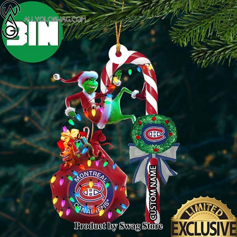 NOTE: [Top-selling] Montreal Canadiens NHL Grinch Candy Cane Custom Name Christmas Tree Ornament