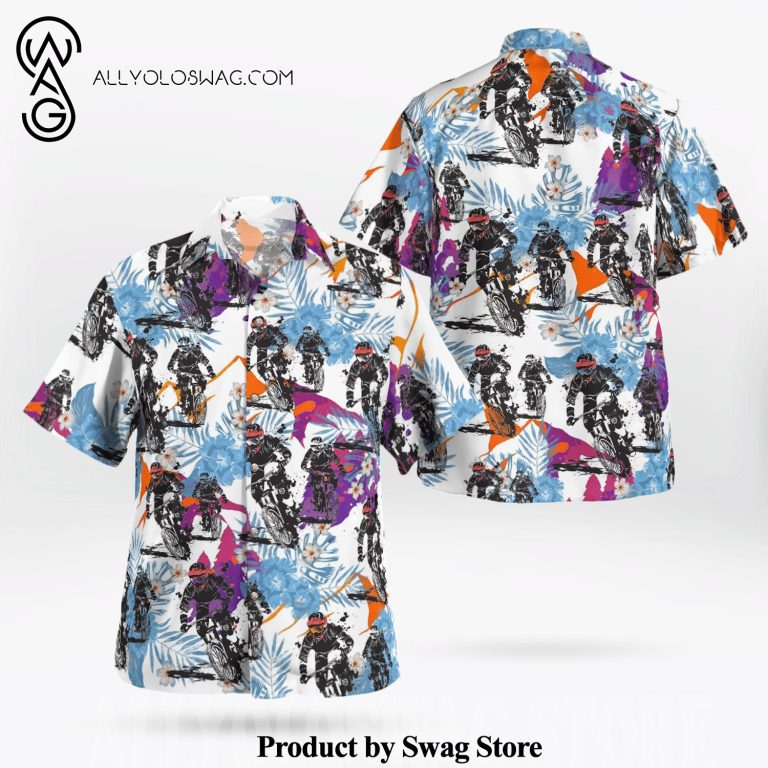 Hawaiian Shirt [Top-selling] Mountain Biking All Over Print Flowery Aloha Summer Beach Hawaiian Shirt – White