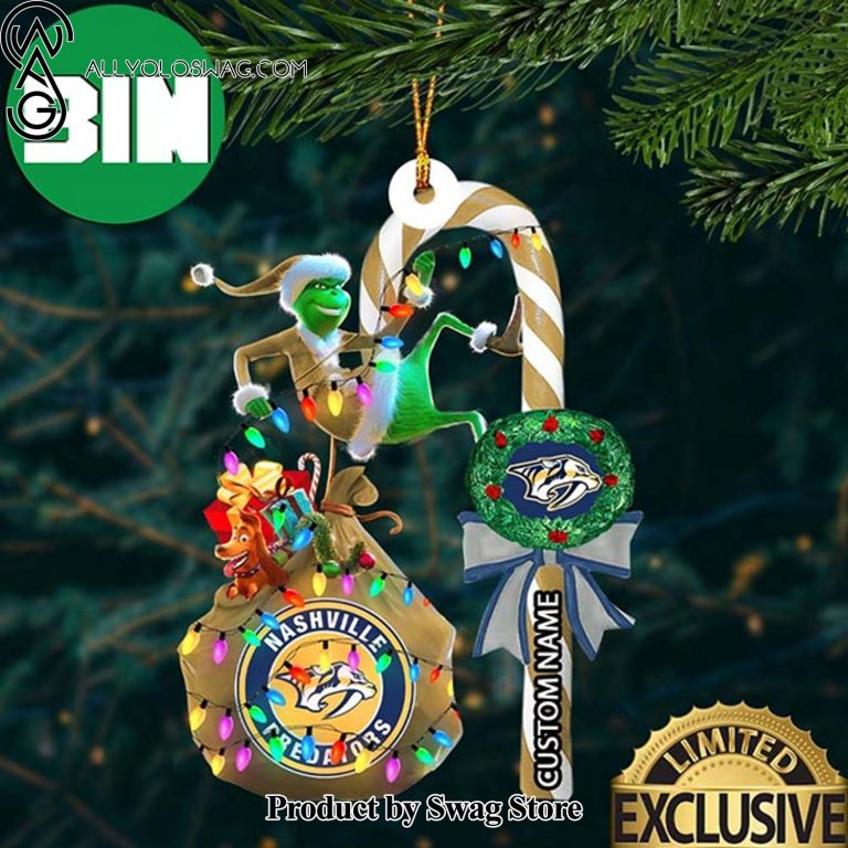 NOTE: [Top-selling] Nashville Predators NHL Grinch Candy Cane Custom Name Christmas Tree Ornament