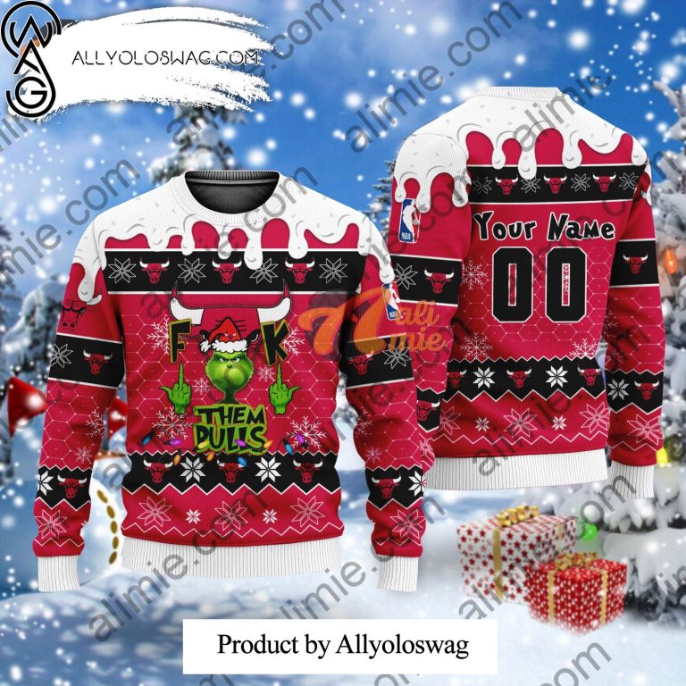 NOTE: [Top-selling] NBA Grinch Fuck Them Chicago Bulls Custom Ugly Christmas Wool Knitted Sweater