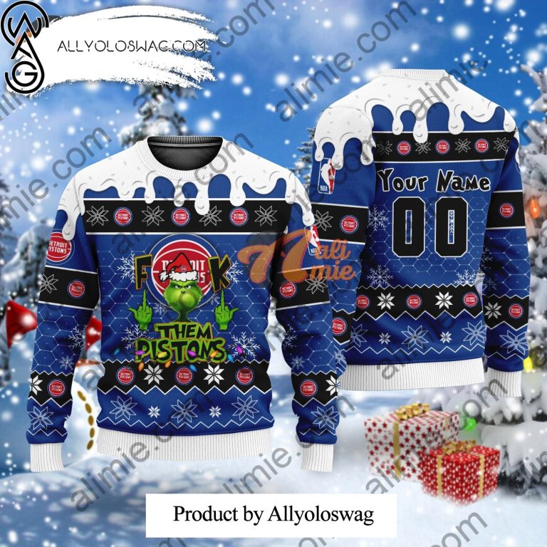 NOTE: [Top-selling] NBA Grinch Fuck Them Detroit Pistons Custom Christmas Ugly Wool Knitted Sweater