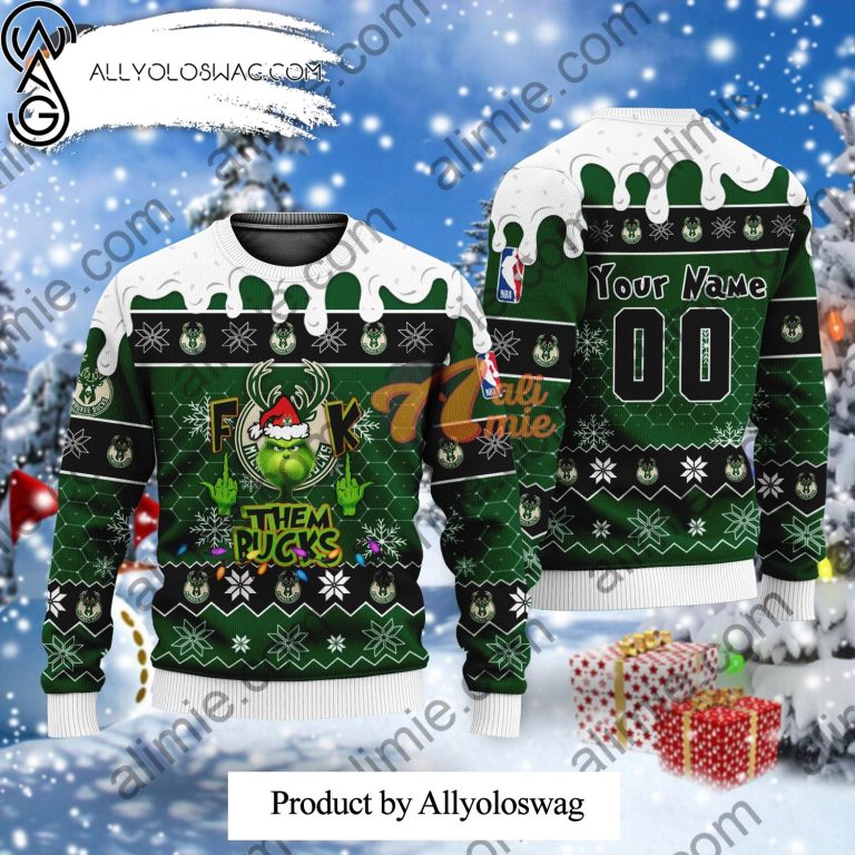 NOTE: [Top-selling] NBA Grinch Fuck Them Milwaukee Bucks Custom Christmas Ugly Wool Knitted Sweater