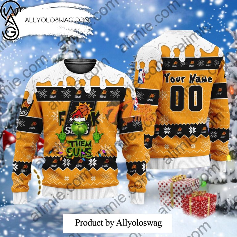 NOTE: [Top-selling] NBA Grinch Fuck Them Phoenix Suns Custom Knitting Pattern Ugly Christmas Holiday Sweater