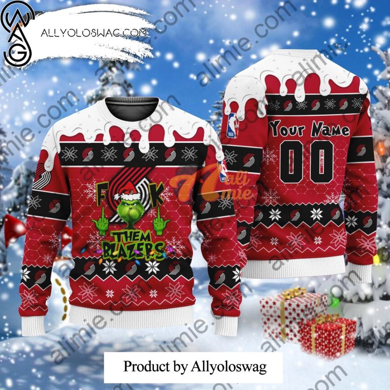 NOTE: [Top-selling] NBA Grinch Fuck Them Portland Trail Blazers Custom Woolen Christmas Ugly Sweater