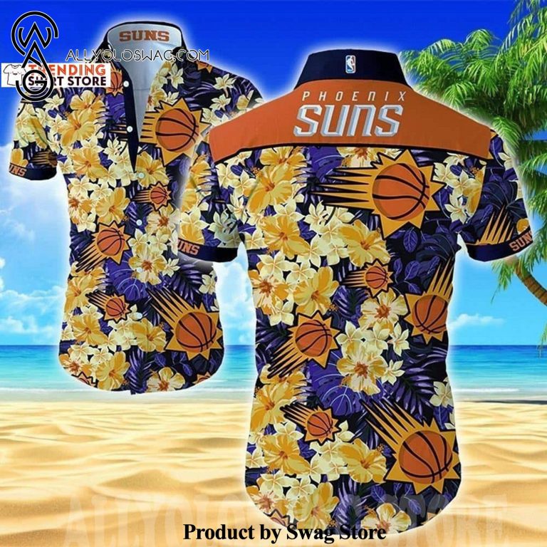 [Top-selling] NBA Phoenix Suns Summer Set Hawaiian Shirt Tropical Flora Beach Lovers Gift was hand-tailored in the early days of fashion. This might happen in the comfort of one’s own home or at a custom tailor’s business. These stores immediately sprang up all across the islands, especially in plantation towns and Honolulu. Newly accessible fabrics from throughout the world were sold at dry goods stores, including printed silk from Japan, raw silk, batik, and rayon from the United States mainland, and cotton cloth for kimonos and yukatas.Hawaiian history had long been shaped by Asian immigrants, and apparel designs reflected this. Short- and long-sleeved shirts, as well as women’s skirts, were created using pre-printed textiles from China and Japan and were based on Asian clothing styles. These bright blouses and dresses were the forerunners of today’s Aloha attire. On the islands, we say “ono” to describe something that is pleasantly cool.