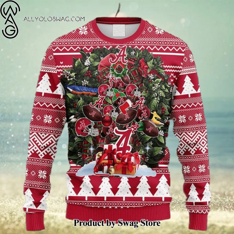NOTE: [Top-selling] NCAA Christmas Alabama Crimson Tide Tree Ugly Christmas Fleece Sweater For Men Women