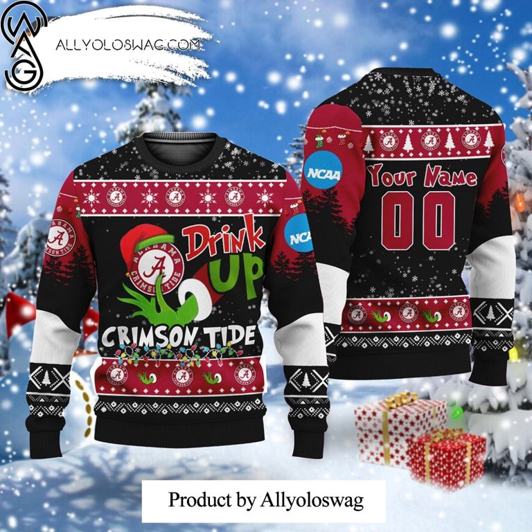 NOTE: [Top-selling] NCAA Grinch Drink Up Alabama Crimson Tide Customs Wool Holiday Sweater