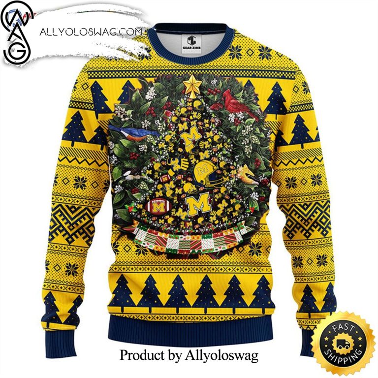 NOTE: [Top-selling] NCAA Michigan Wolverines Ball Pine Tree Christmas Ugly Christmas Wool Knitted Sweater
