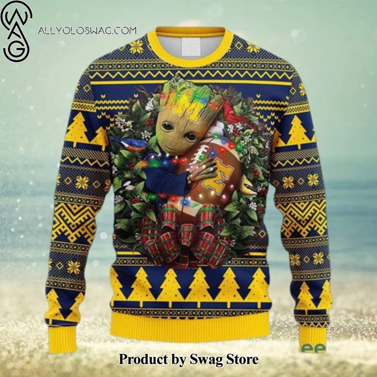 NOTE: [Top-selling] NCAA Michigan Wolverines Groot Hug Christmas Ugly 3D Knitted Sweater For Men And Women Gift Ugly Christmas