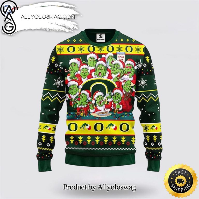NOTE: [Top-selling] NCAA Oregon Ducks Print 12 Grinch Xmas Day Gift For Football Fans Sweater