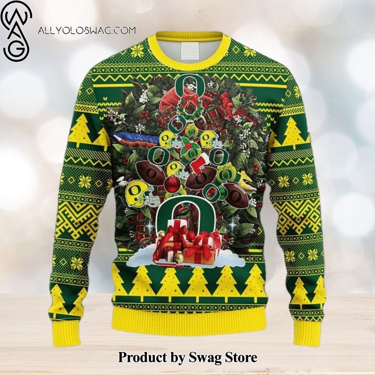 NOTE: [Top-selling] NCAA Oregon Ducks Tree Fleece 3D Sweater For Men And Women Gift Ugly Christmas