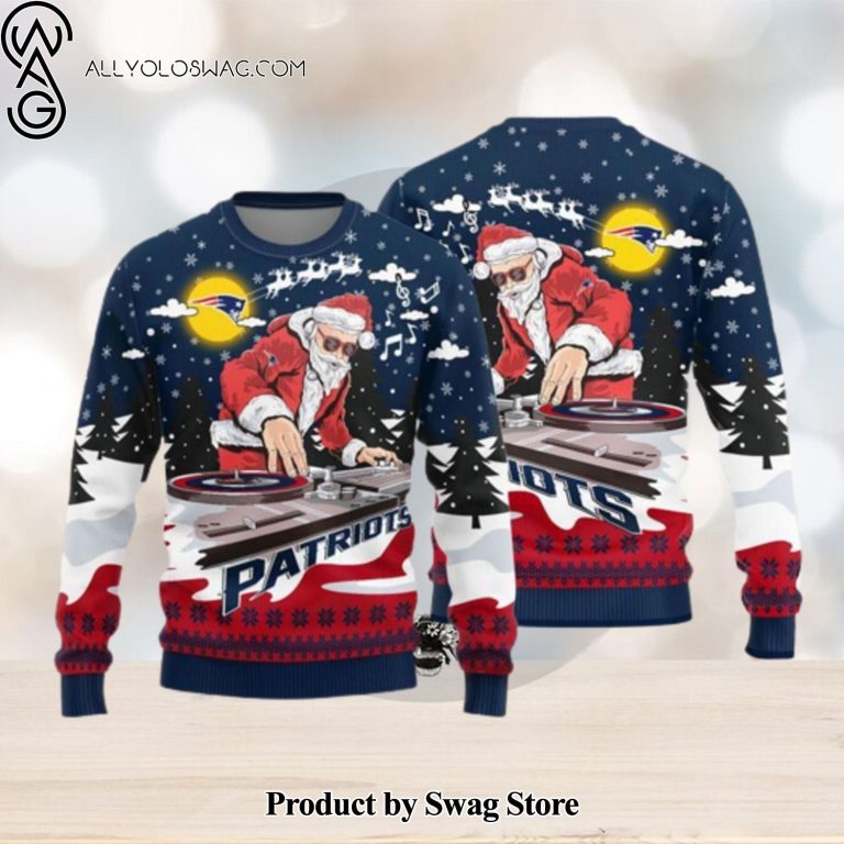 NOTE: [Top-selling] New England Patriots Logo Knitted Funny DJ Santa Ugly Christmas Sweater