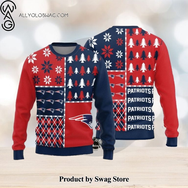 Some details about our [Top-selling] New England Patriots Logo Knitted Pine Trees Pattern Ugly Christmas Sweater