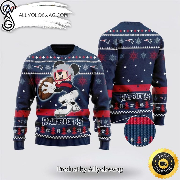Some details about our [Top-selling] New England Patriots Mickey Mouse The Decisive Throw Ugly Christmas Sweater