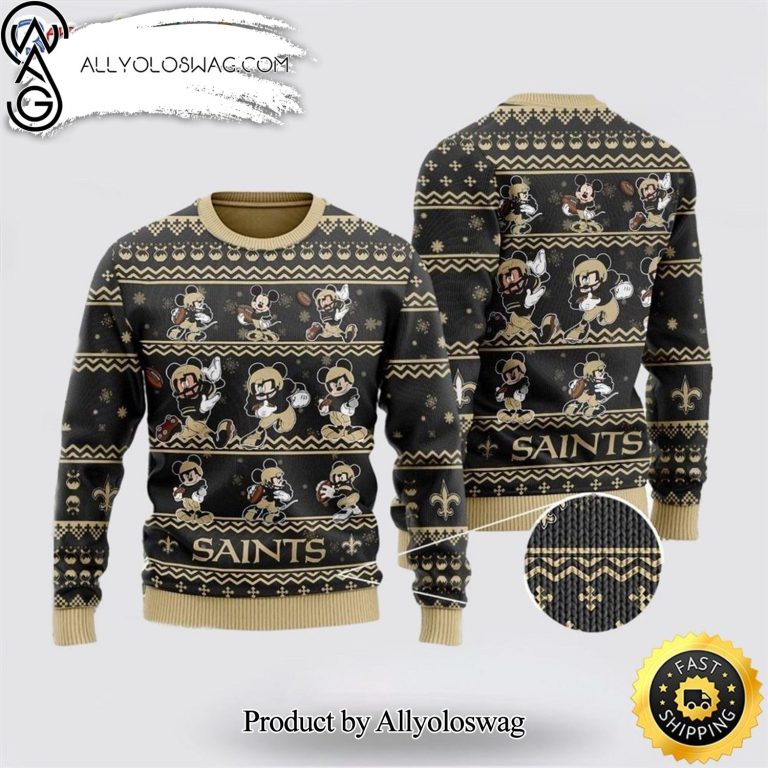 Some details about our [Top-selling] New Orleans Saints Captain Mickey Mouse Perfect Gift For Football Fans Knitting Pattern 3D Print Ugly Sweater