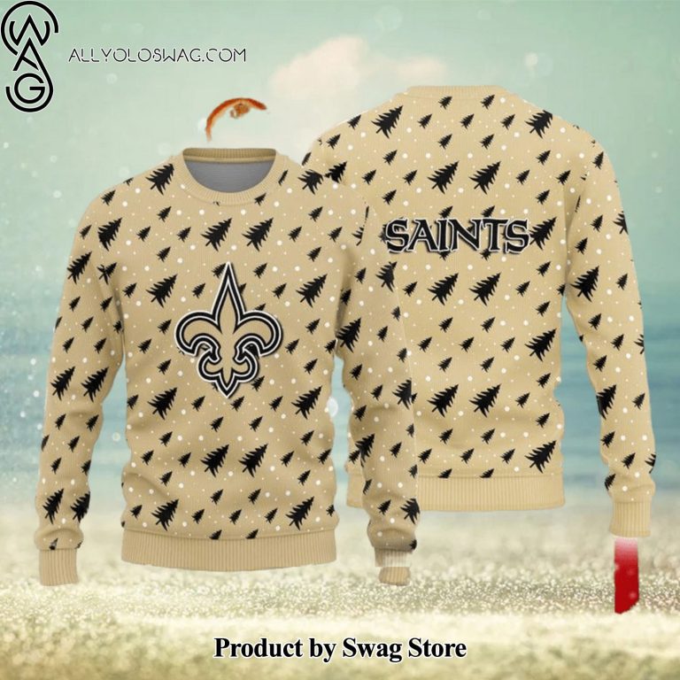 NOTE: [Top-selling] New Orleans Saints Christmas Pine Tree Patterns Pattern Knitted Ugly Christmas Sweater AOP Gift For Men And Women