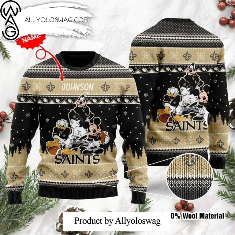 NOTE: [Top-selling] New Orleans Saints Disney Donald Duck Mickey Mouse Goofy Customs Sweater