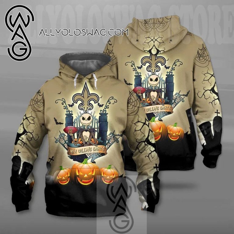 Product description information – [Top-selling] New Orleans Saints Halloween Costume For Sport Fan All Over Printed Shirt Jack Skellington Graphic