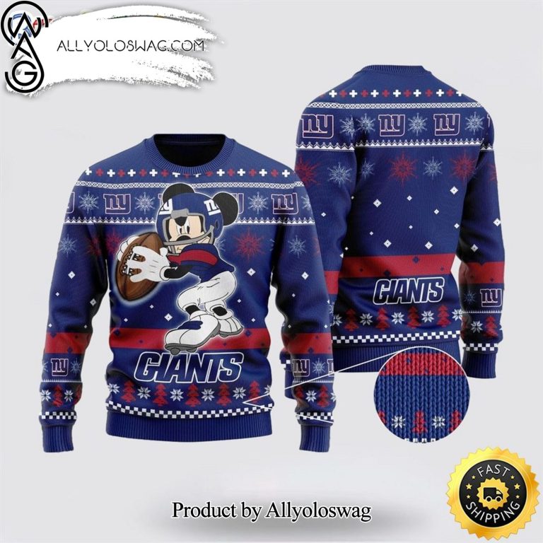 Some details about our [Top-selling] New York Giants Mickey Mouse The Decisive Throw Ugly Christmas Sweater