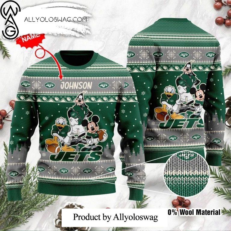NOTE: [Top-selling] New York Jets Disney Donald Duck Mickey Mouse Goofy Customs Ugly Wool Sweater